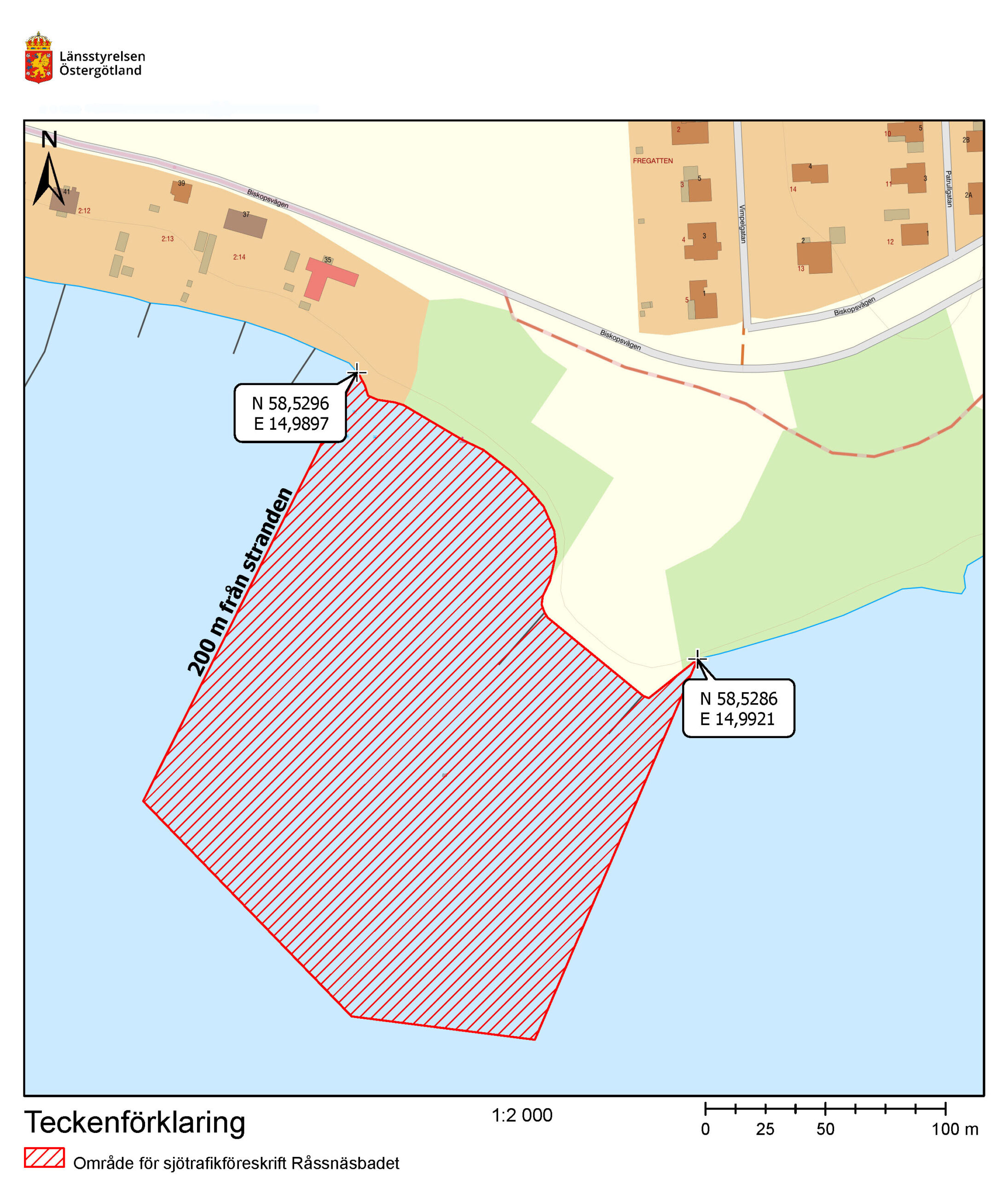 Förbudet gäller enligt Länsstyrelsen Östergötlands föreskrifter om förbud mot trafik med motordrivet fartyg och förbud mot ankring vid Råssnäsbadet i Motala kommun.