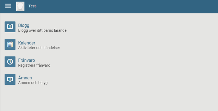 När du har klickat på ett menyval kan du komma tillbaka till huvudmenyn för barnet genom att klicka på ”hamburgermenyn”, de tre strecken längst upp till vänster.
