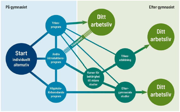 - har fullföljt årskurs 9 utan att ha uppnått behörighet till ett nationellt gymnasieprogram. Ditt utbildningsmål kan vara nationellt gymnasieprogram, yrkesintroduktion, programinriktat val, annan utbildning eller yrkesliv.