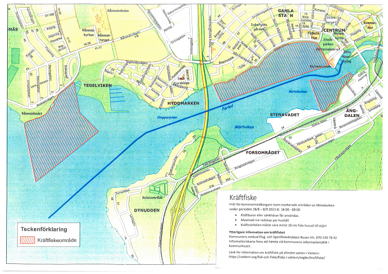Från den 8 augusti till och med den 31 augusti 2025 erbjuds invånare i Motala kommun gratis kräftfiske. Kräftfisket får ske i delar av Motalaviken på kvällar och nätter klockan 18.00-9.00.